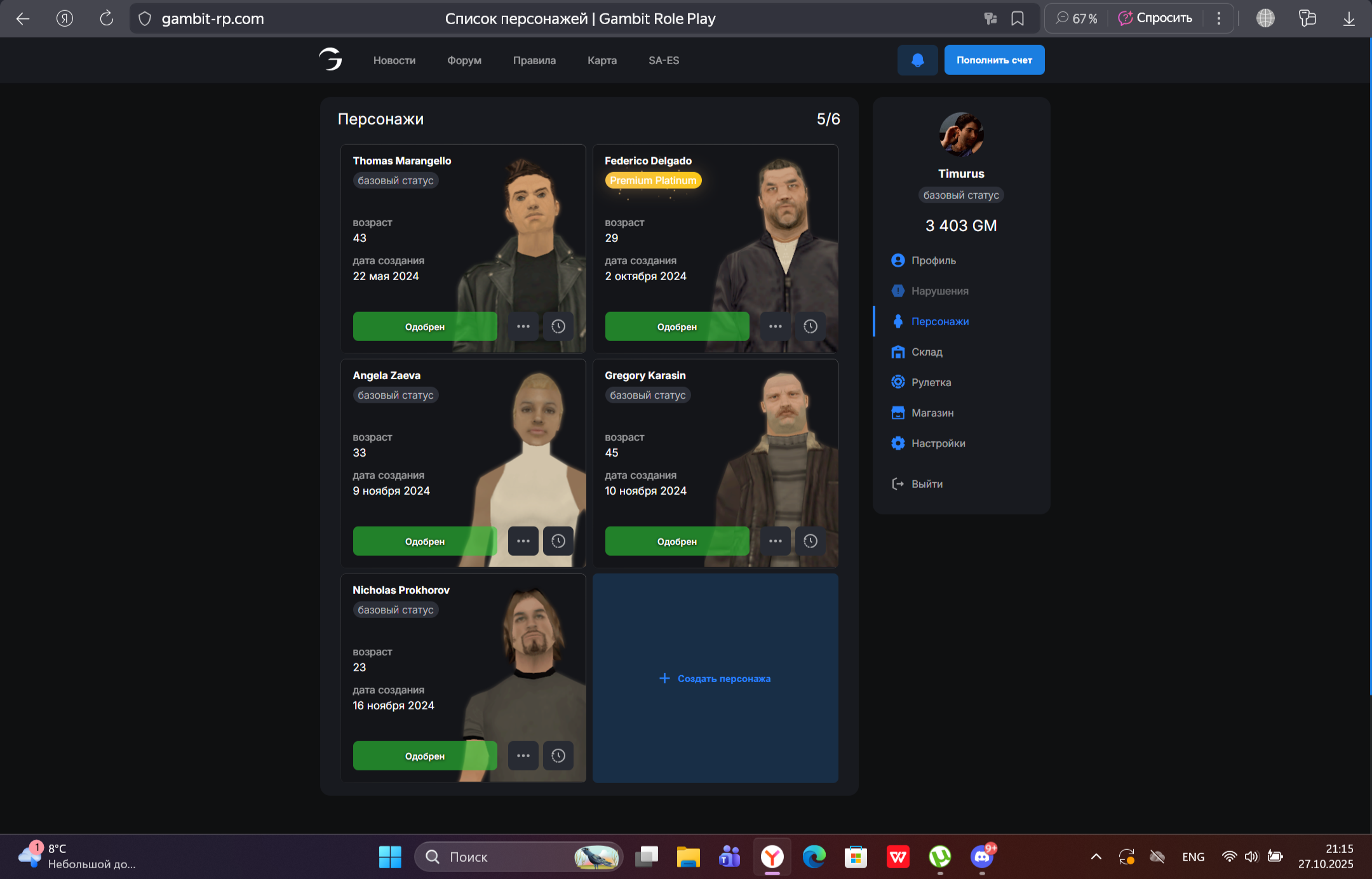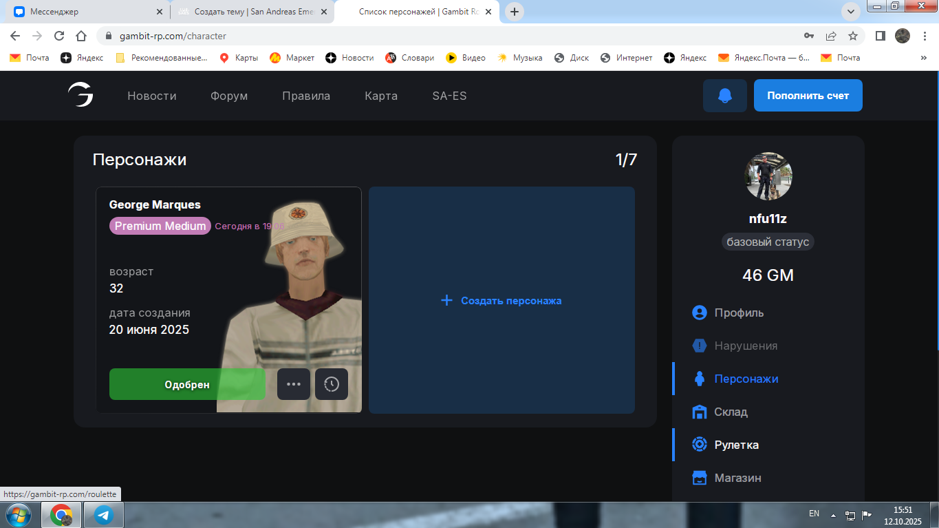 IC никнейм персонажа, с которого будете играть в нашей фракции: George Marques