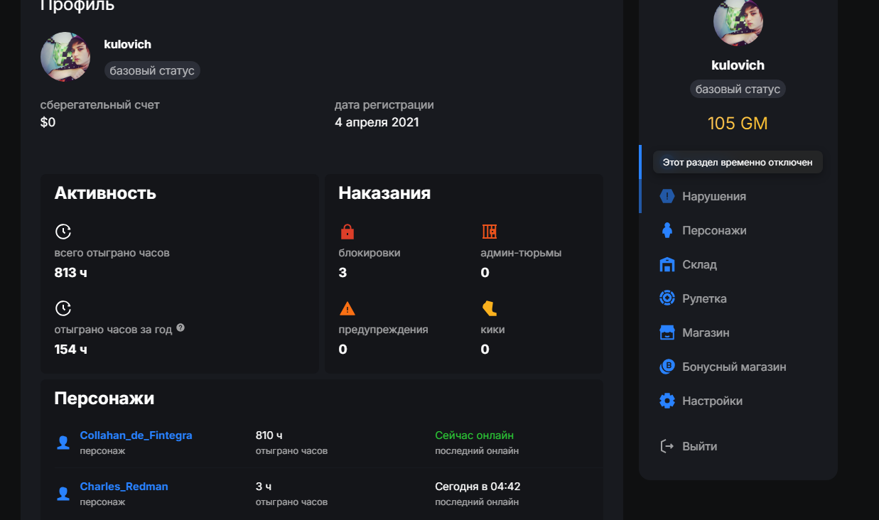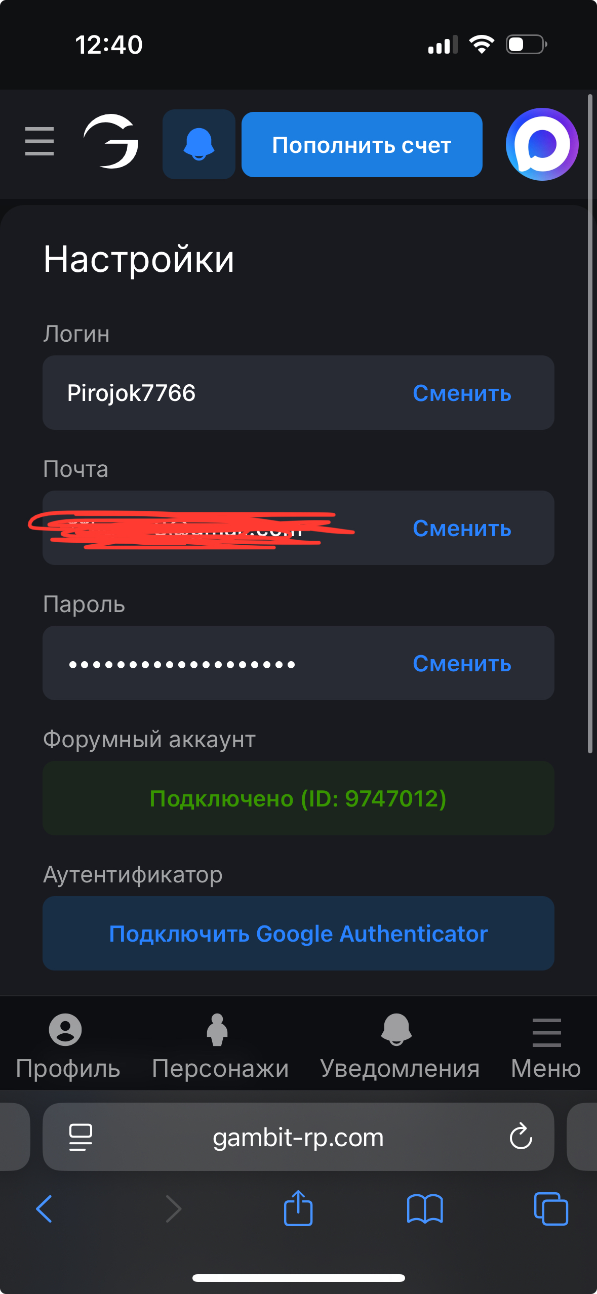 Скриншот наказаний с личного кабинета (полный скриншот): Скриншот двухфакторной защиты (полный скриншот): Форумный аккаунт Gambit RolePlay: