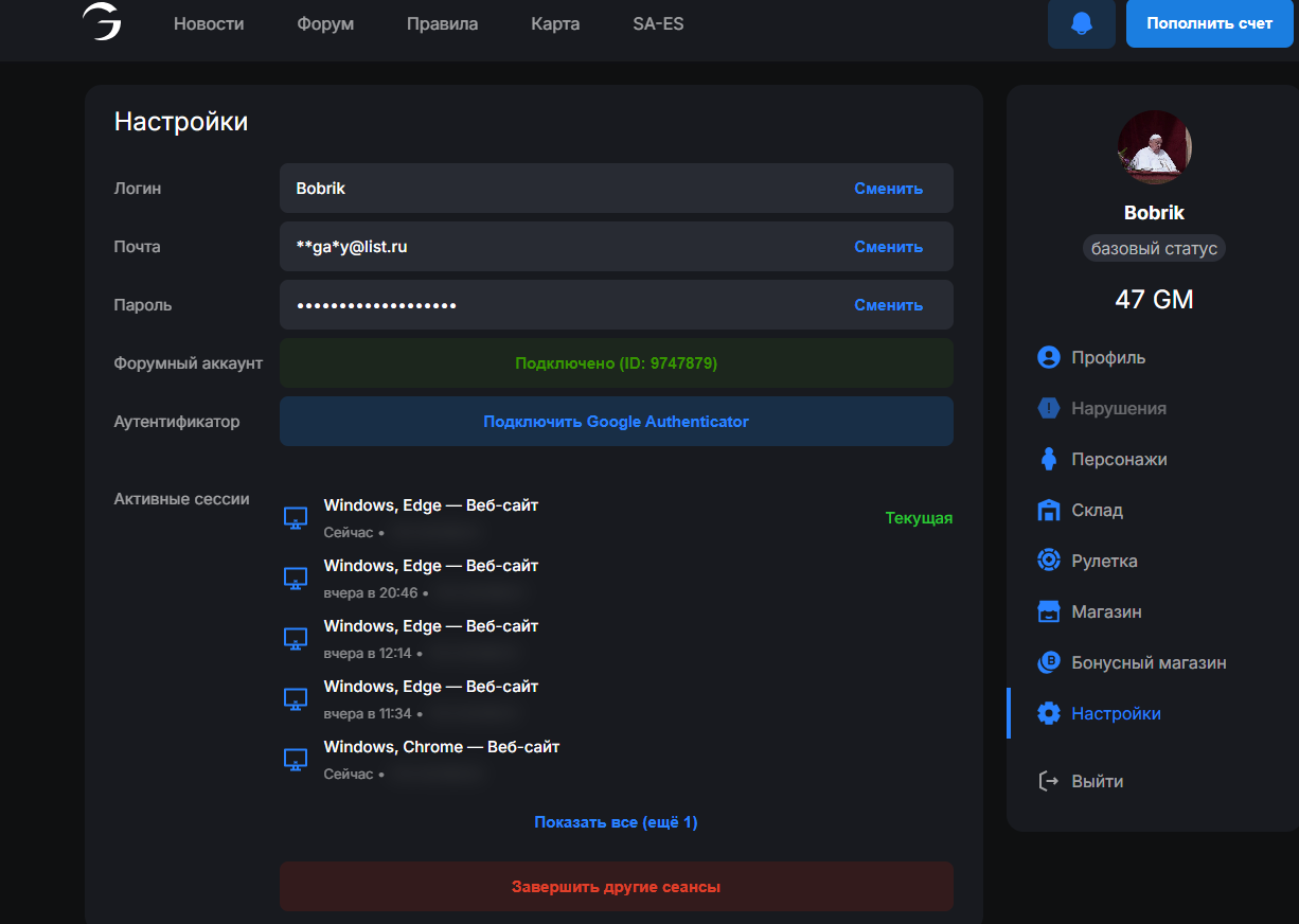 5. Ссылка на форумный аккаунт гамбита: https://forum.gambit-rp.com/members/9747879/