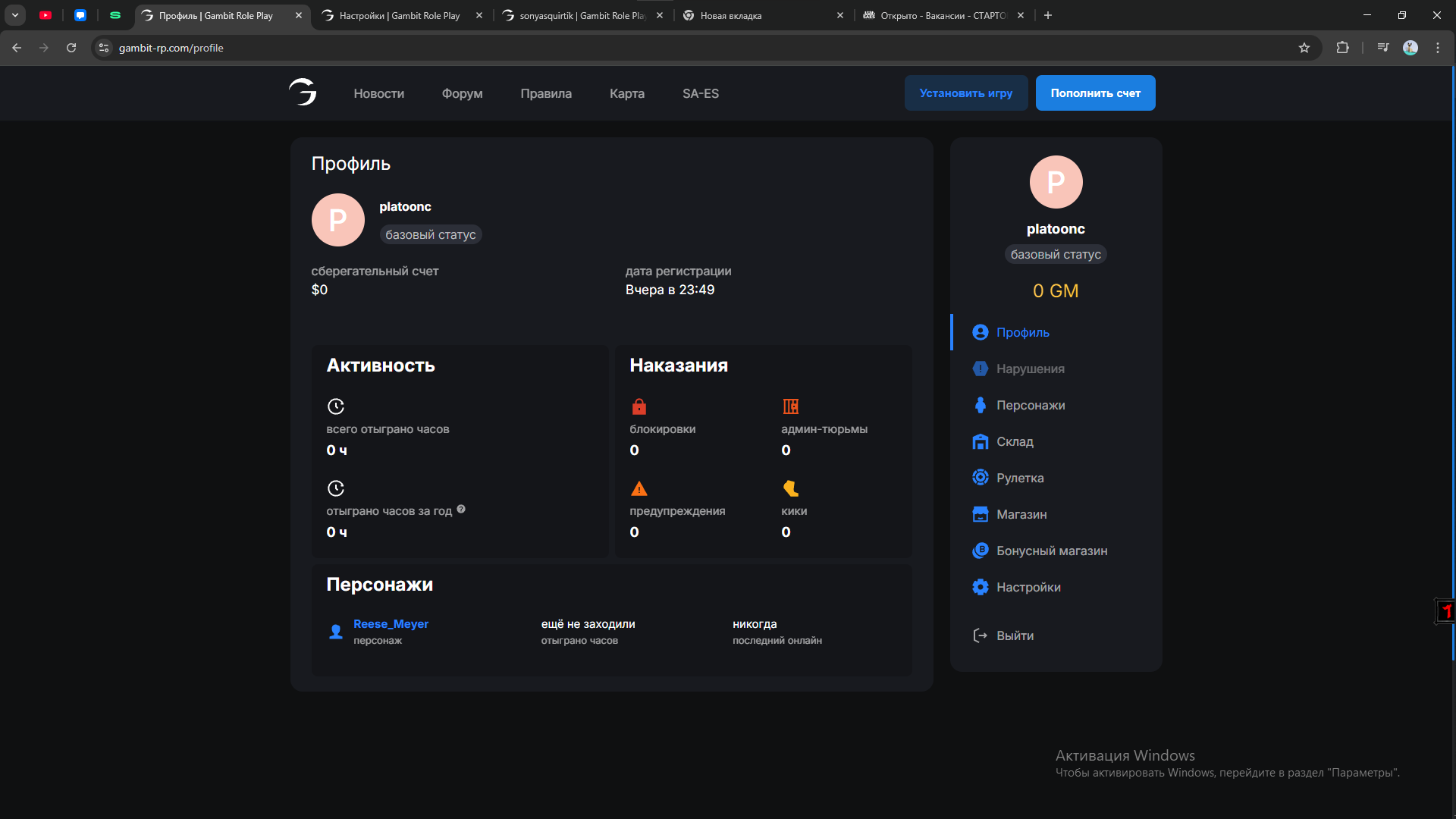 5. Ссылка на форумный аккаунт гамбита: https://forum.gambit-rp.com/members/9764202/